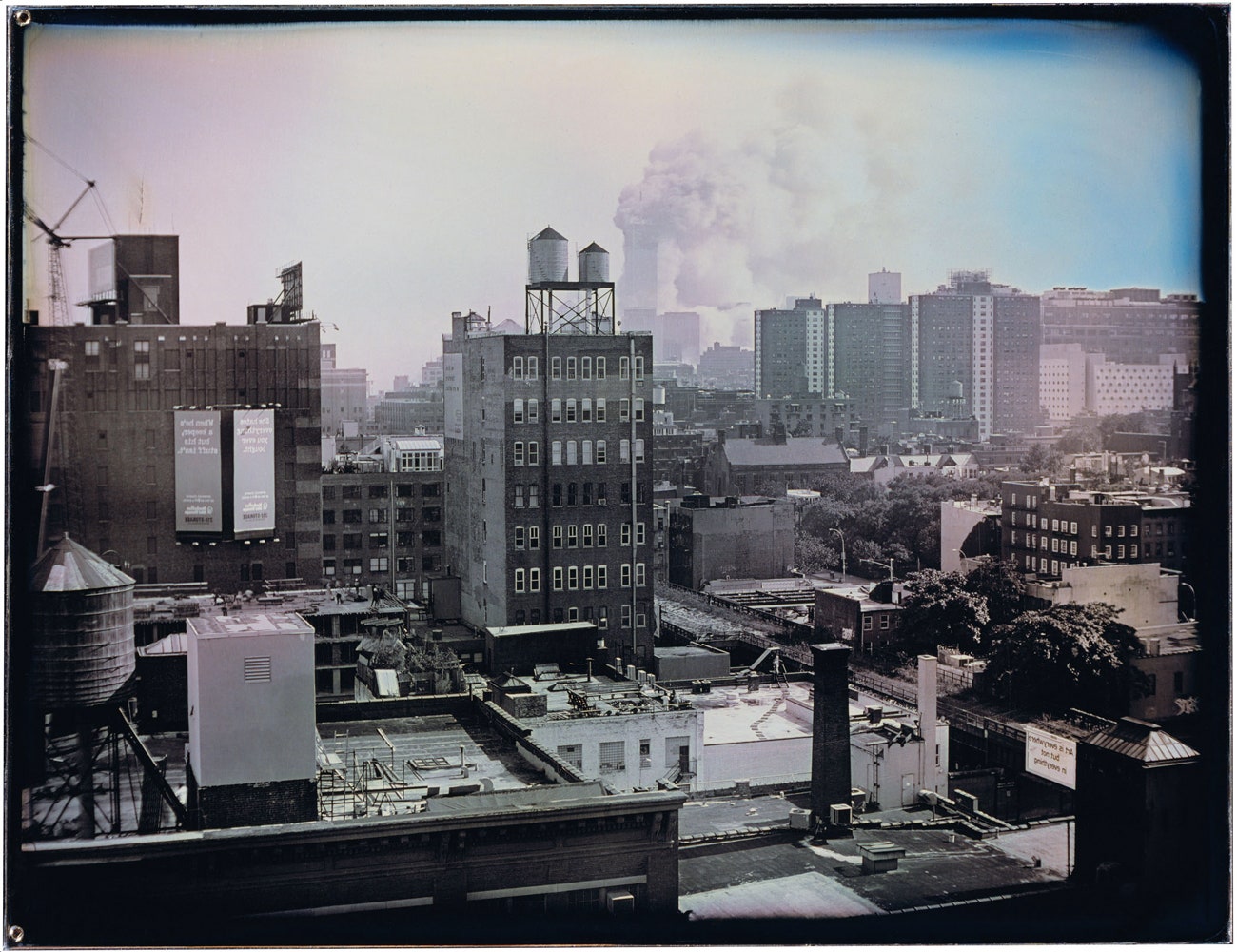 Một chuyên gia về kỹ thuật chụp ảnh đã mang một chiếc máy ảnh cũ có khung cảnh bằng gỗ và một tấm daguerreotype lên sân thượng tại Chelsea, chụp lại khoảnh khắc ba giây trước khi tòa tháp phía nam biến mất ở đường chân trời