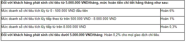 Ưu đãi 3: Hoàn tiền theo doanh số chi tiêu: Ngoài CTKM trên, khách hàng còn được hưởng chính sách ưu đãi hoàn tiền dài hạn theo doanh số chi tiêu của thẻ VietinBank MasterCard Cashback, cụ thể: